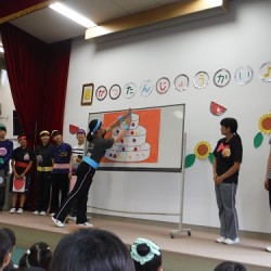 2学期が始まるとほぼ同時に、愛媛大学教育学部の学生の教育実習も始まりました。保育実習として、楽器作りや絵の具遊びなどを企画して子どもたちと楽しんだり、「降園前のひととき」で手遊びや読み聞かせをしたりしました。子どもたちは、教育実習の先生からも、たくさんの遊びの刺激を受けていました。 9月8日に…