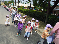 おまつりごっこ 10月4日 木曜日地方祭に先駆けて、幼稚園でおまつりごっこを楽しみました。各クラスで飾り付けしたおみこしを担いで園内をあちこち練り歩きます。 「わっしょい! わっしょい!!」 職員室の前では、副園長先生にみんなの幸せを願ってお祓いをしてもらいました。…