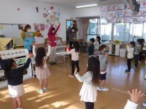 自分やお友達のお母さん、おばあちゃん先生たちが来てくださるとあって、子どもたちはにこにこ笑顔の登園でした。