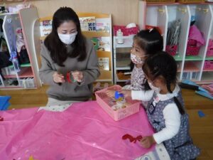 提案してくださった遊びが刺激となり、子どもたちがまた自分の遊びを広げていくことと思います。どんな姿が見られるか、とても楽しみです。