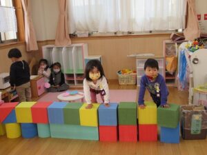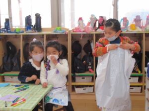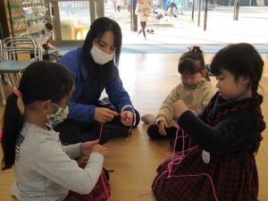 保育室でも、参画で体験した指編みにいそしむ子、お手紙を書いている子・・・。子どもたちの主体的な遊びの姿は各所で見られます。