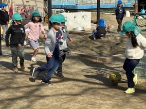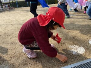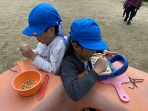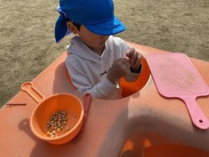 昨日豆まきをして園庭に残っていた大豆を拾い集めていましたが・・。
