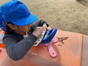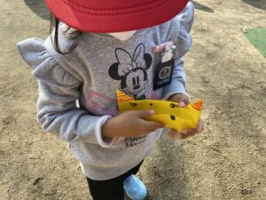 おやおや、午後からの東園庭で、何やらおままごとを楽しんでいる子もいます。