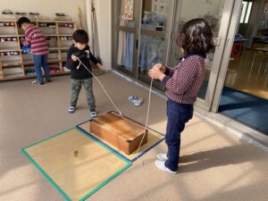 楽しい見立て遊びで会話に花が咲きます。それを聞いていた別の子が