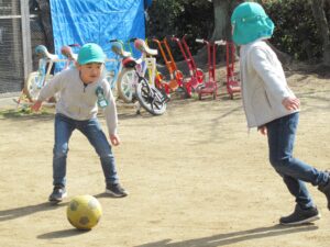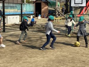 園庭ではサッカーに汗を流す子どもたちの姿がありました。
