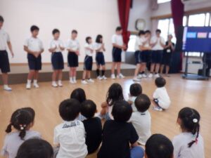 附属特別支援学校の中学2、3年の生徒さんが幼稚園へ遊びに来てくれました。