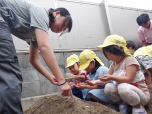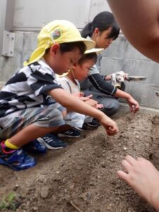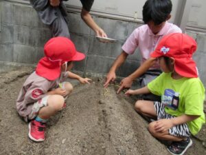 園舎の裏にある畑の種まきを一緒にしてくれました。