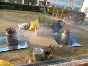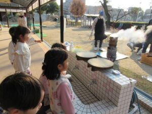 朝早くからから園長先生がかまどの火付けをしてくれましたよ。
