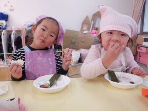 お餅にあんこをのせて海苔で巻いて食べる子や、