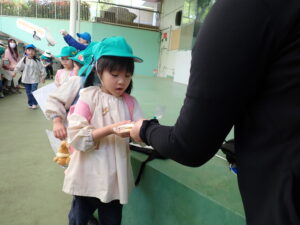 その後、みんなで動物ビンゴをしました。ビンゴになった子からおやつをもらいました。すぐにビンゴになる子、なかなかビンゴにならない子など様々でしたが、楽しいビンゴ大会になりました。