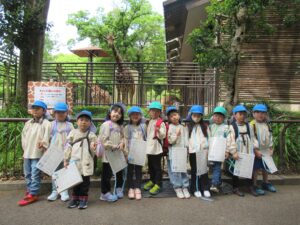 途中で、おやつ取りゲームをして、おやつを食べながら休憩をしました。エネルギーを充電した後は、サルやトラ、ゾウなどの動物をじっくりと見ました。最後は、ちょっと疲れた子もいたけれど、おうちの人と学年のみんなと楽しい時間が過ごせました。