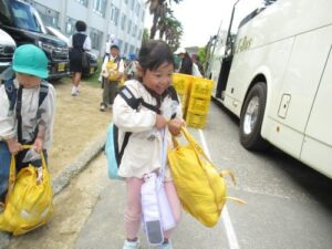 バスの中では、大型バスから見える景色にうっとりする子、お友達とおしゃべりに夢中な子、みかん狩りに向けて体力を温存している子と様々な様子が見られました。