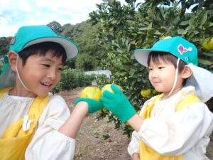 「美味しいみかんを採ってきてって言われたから美味しそうなみかんを見付けるんだ。喜んでくれるといいな。」と、お家で待っている家族のことを考えている子がたくさんいました。