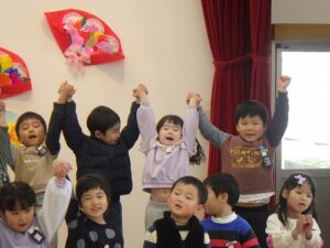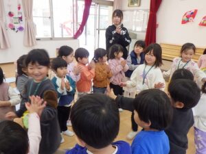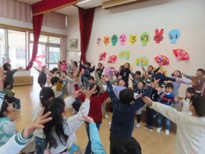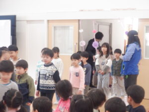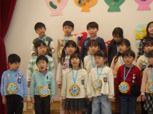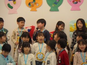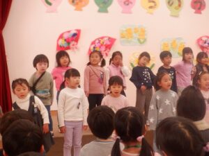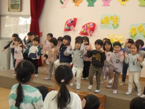 年長児に感想を聞いてみると、「年中さんや年少さんがいろんなことをしてくれて、うれしかった」「歌や踊りが上手だった」と言ってくれていました。年中児、年少児から年長児に「ありがとう」の気持ちがしっかりと伝ったようです。