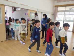 会の最後には、みんなで「ありがとうの道」を作って年長さんを見送りました。