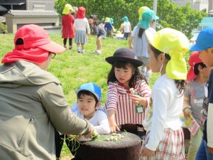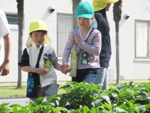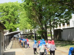 4月22日 月曜日。今日は、年中さん・年長さんが一緒になって、お散歩に出掛けました。