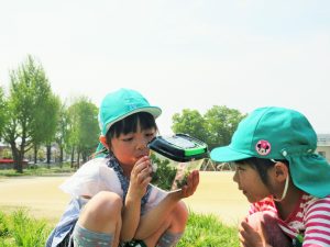 滑り台やおにごっこをしたりして楽しんだり、四つ葉のクローバーやシロツメクサ、ムシなど自然の楽しさを見付けて楽しんだりしました。