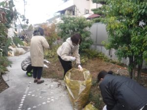 お母さん方が、一つ一つ丁寧に草を抜いてくださいます。