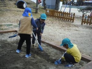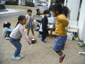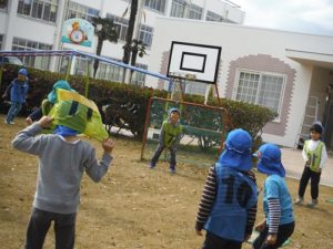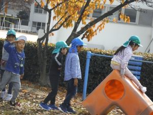 中庭や小学校の校庭、運動場と、新たな環境にも慣れ、子どもたちは自分の思いをもって、楽しい遊びを存分に広げていくことができました。
