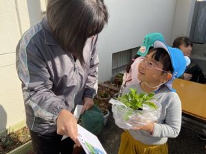 先日は、年長さんが特別支援学校の園芸部のみなさんが育てている花のお買い物に行きました。