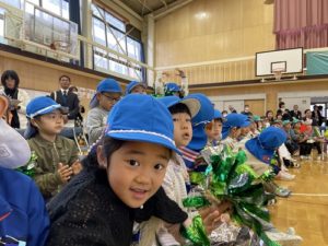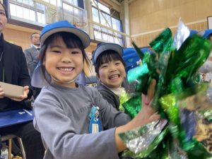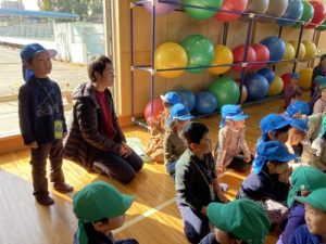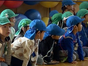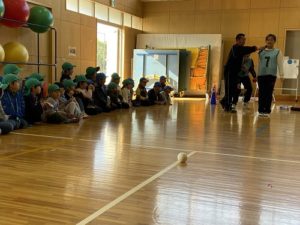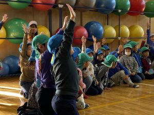 新スポーツにみんな、見入ってしまいました。そして、一生懸命練習する姿を見て、いつの間にか大きな声で応援を始めた年長さん。元気いっぱいの声が体育館じゅうに響き渡ります。