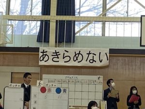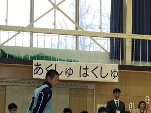 いよいよ、オファーのあった「とくしんピック」の日です。附属特別支援学校と、附属中学校の混合のチームを結成し、赤チーム、青チームに分かれて競技をします。場所は、附属中学校体育館!