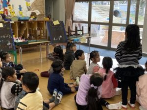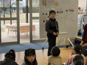冬の寒い日、氷に心を動かされている子どもたち。もう一つ、年長さんが今、夢中になっているのがお店屋さんごっこの準備です。