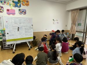 知恵を出し合い、意見を述べ合ってよりよいものへと共同で創り上げていきます。ありがとう,年長さん。その気持ちがすごく嬉しいです。
