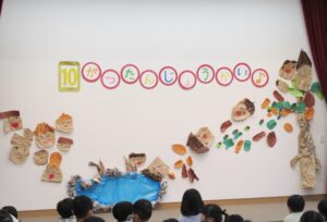 10月生まれさんが生まれた月の雰囲気に包まれたお誕生会を楽しんだね。