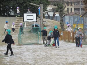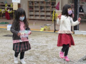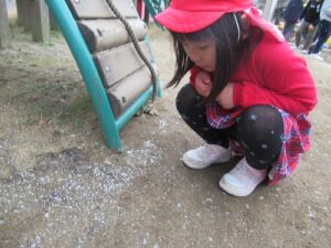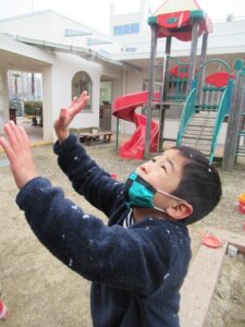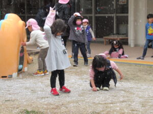 いつの間にか、園庭は雪で白くなっていきました。