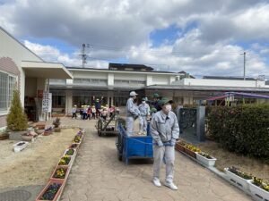リヤカーの中には、お兄さん、お姉さんたちが一生懸命種から育てたお花が並べられています。