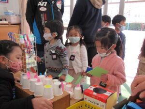 今日は、幼稚園にこられたお客様も、年長さんのお店を楽しんでくださいました。