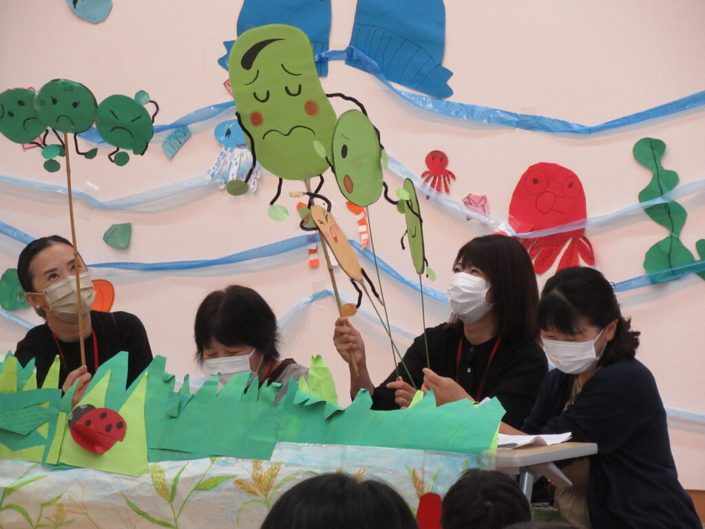 次のお楽しみは、おうちの人によるペープサート劇「ソラマメくんのベット」です。