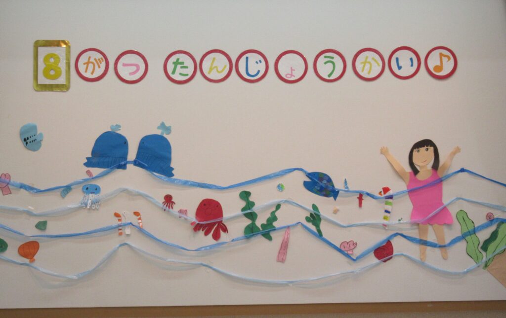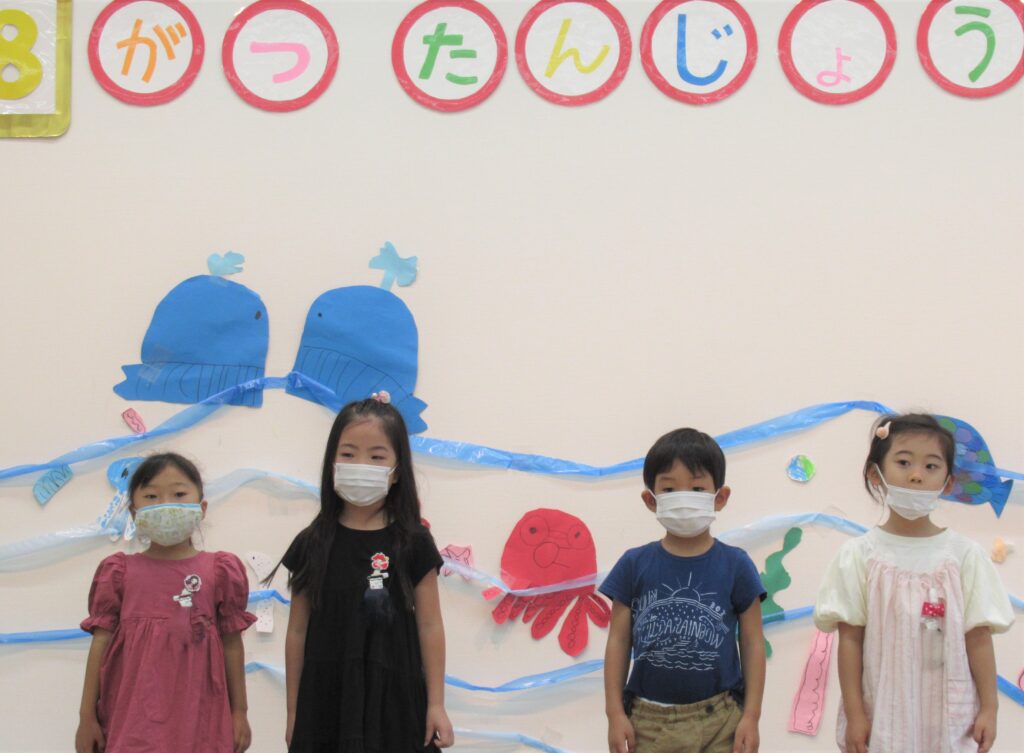 9月16日 木曜日。今日は8月誕生児をお祝いする「うみ誕生会」(会の名称は年長さんのアイデア)がありました。