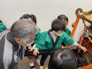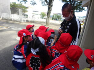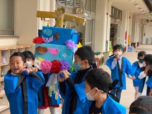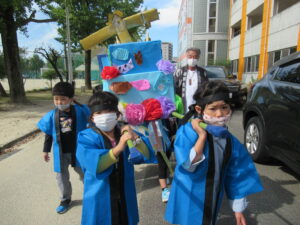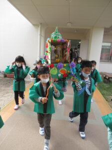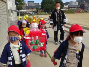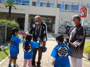 地域の伝統行事に触れ、地域の方々や附属校園のみなさんの温かさに触れ、笑顔いっぱいのおまつりごっこになりました。