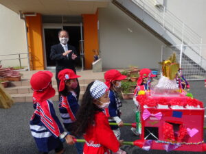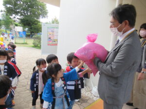 そして、それぞれの場所で、園長先生、校長先生、副校長先生からお土産もいただきました。