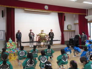 3人は地域の方で、秋祭りのお世話をしてくださっている方々です。地域の方々から、お祭りのこと、おみこしのことなどをたくさんお話していただきました。子どもたちの質問にも、わかりやすくお答えいただきました。ありがとうございました。