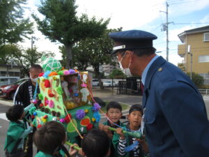 子どもたちは元気いっぱいおみこしを担いで進んでいきます。練り歩き中に出会ったいろいろな人から、「すごいね!」「かっこいい!!」など、嬉しい声をたくさん掛けていただきました。
