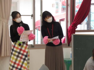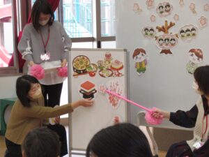 お家の人の出し物では、ひな人形やひな祭りの食べ物のお話を聞きました。