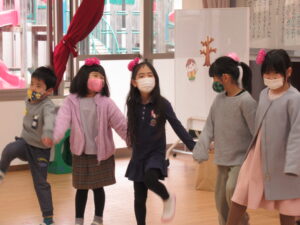 誕生児たちがフロアに戻ると、出し物係さんによるお楽しみの劇が始まりました。