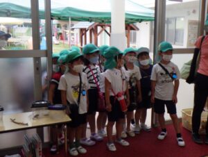 まずは、年長児が年少児や年中児を誘いに行きました。