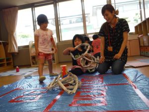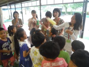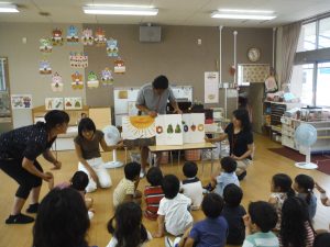 附属幼稚園では、「参画週間」として、毎回数人ずつ保護者の皆様に保育に参加していただく機会を設けています。読み聞かせや遊びのコーナーなど、お母さん先生、お父さん先生の働き掛けに、子どもたちはワクワク!事前に保護者の方同士でご相談いただいた遊びの提案を、ありがとうございました。