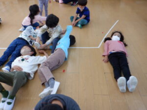 たくさん遊んだ後は、お待ちかねのおやつ取りをしました。遊具の周りをぐるっと回ってお目合てのおやつを取りました。