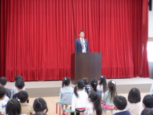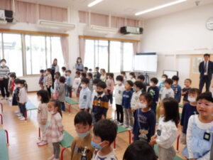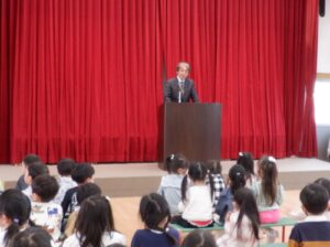 園長先生からは「進級おめでとう。新しい学年になったから、新しいことにどんどん挑戦してね。」という話がありました。