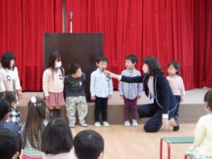 新任式の後は、新しく附属幼稚園に仲間入りした年中児の紹介がありました。