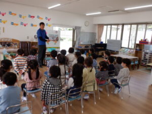 みんなで「ふぞくようちえんのうた」を歌った後、園長先生のお話を聞きました。