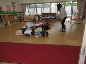 命を守る行動が身に付くように、今後も幼児の育ちに応じた避難訓練を重ねていきたいと思います。