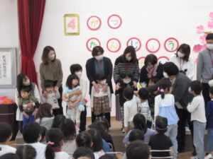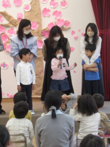 司会係の終わりのあいさつで、楽しいさくら誕生会は終わりました。
