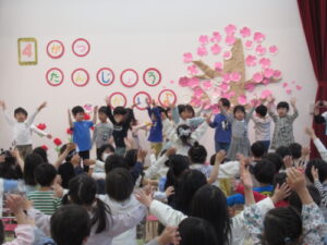 年長児たちが入園式で歌った歌なので、自然とダンスに合わせて歌声が聞こえてきました。