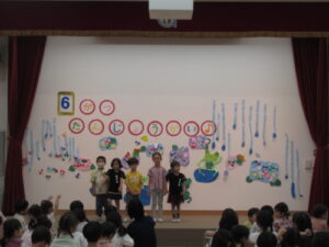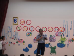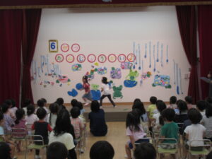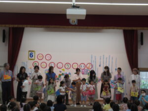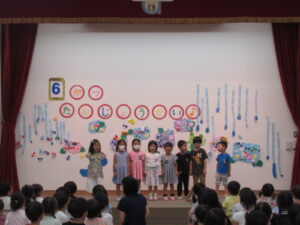 6月22日木曜日、6月誕生児をお祝いする「カエル誕生会」を行いました。